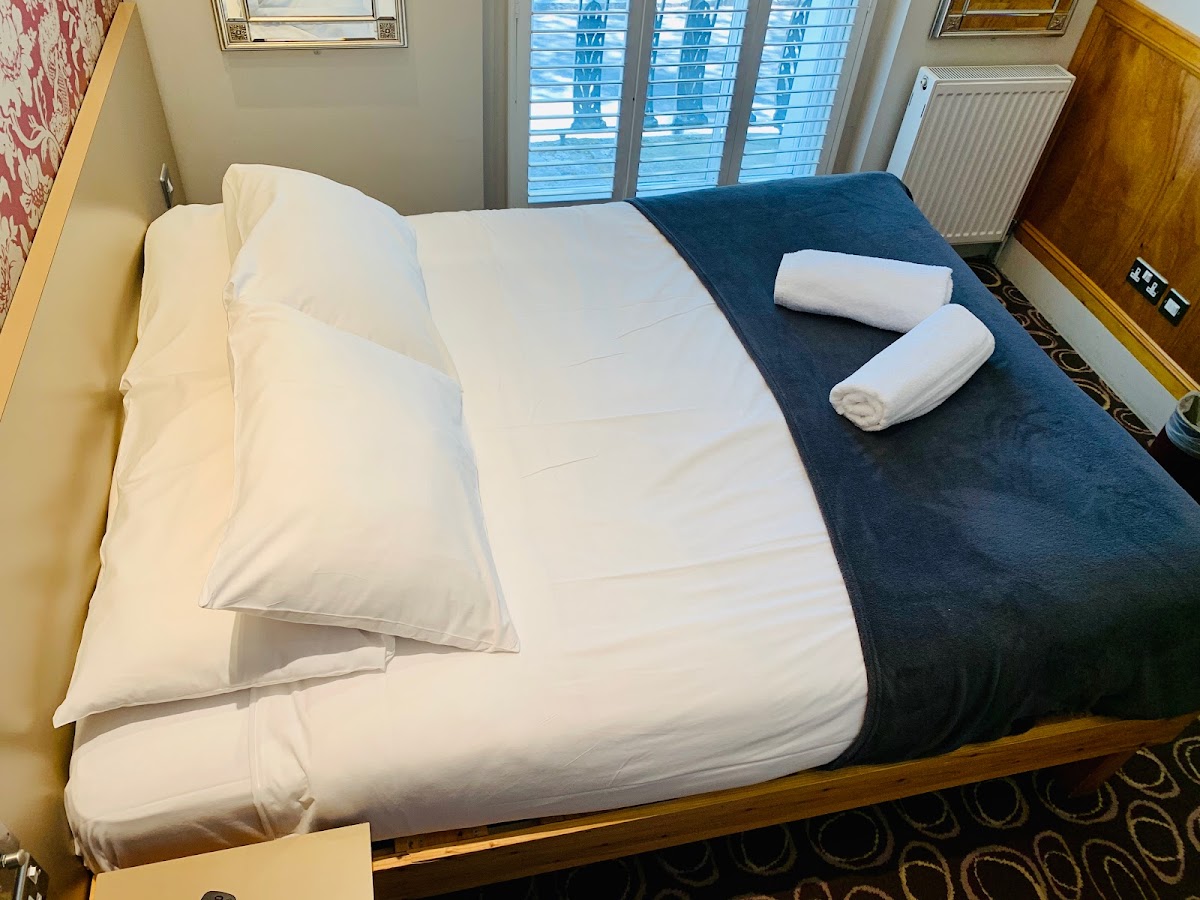 The customer service was really friendly and helpful, Rooms looked lovely at first glance but looking deeper there were a few too many flaws - There was a crack above the Toilet door frame, extremely dusty under the bed, TV picture was terrible! it looked as if we were watching a Cartoon Strip style program and it was The Big Bang Theory, Bed sheets were very clean but ripped, 3 Lights were not working, neither was the towel heater. There was a strange switch that never turned anything on - Which i'm assuming was meant to be the vent so bathroom got very steamy, the shower door didn't close properly the grout in between tiles in bathroom were very dirty and if given a good scrub would be really nice! Shower didn't extend very high meaning tall people have to crouch when in the shower to wet neck up, There was little to no storage space and some could definitely be fitted under the be and no coat hooks on doors except inside the bathroom - meaning when we hung things up they got steamed and moist due to shower. some of the wooden blinds in the room were also broken so did not shut correctly. Check in stated that it was at 11am when booking but you can not go to your room until 2pm, and after getting a 9 hour bus to london and walking 2 hours to get to the hotel, this was rather inconvenient. you were able to leave bags which helped a lot. Writing this review made us realize just how many things were wrong with the room, but they did not affect the stay. which is a shame as hotel had a lot of potential and if these easily fixed things were done, it would have been 5 stars. Housekeeping were good, emptied bin, Bed was very comfy and sheets/pillows given were also high standard, room was always warm with an easy window to open and shut, standard sized room, hair dryer/straighteners available from front desk, Towels, Cups, Kettle, Small range of tea/coffee provided. No plates or cutlery were provided which would have been super!